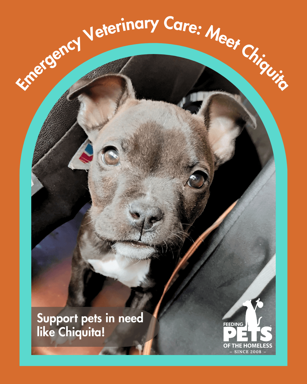 One day, I became very sick. I could not keep food or water down, and I felt weak and tired. My mom was scared and did not know how she would help me. A trusted partner connected us to Feeding Pets of the Homeless, and I was quickly approved for Emergency Veterinary Care.